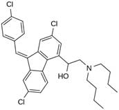 IUPAC Name : 2-(dibutylamino)-1-[(9Z)-2,7-dichloro-9-(4-chlorobenzylidene)-9H-fluoren-4-yl]ethanol