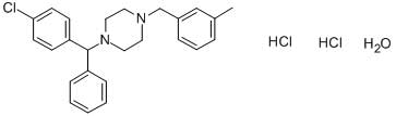 Synonyms : MECLIZINE HYDROCHLORIDE (500 MG);Meclizine hydrochloride;Antivert;Permesin;MECLIZINE HYDROCHLORIDE MONOHYDRATE;Meclizine dihydrochloride monohydrate;1-[(4-Chlorophenyl)phenylMethyl]-4-[(3-Methylphenyl)Methyl]piperazine DiHydrochloride Hydrate;Meclizine Related CoMpound B